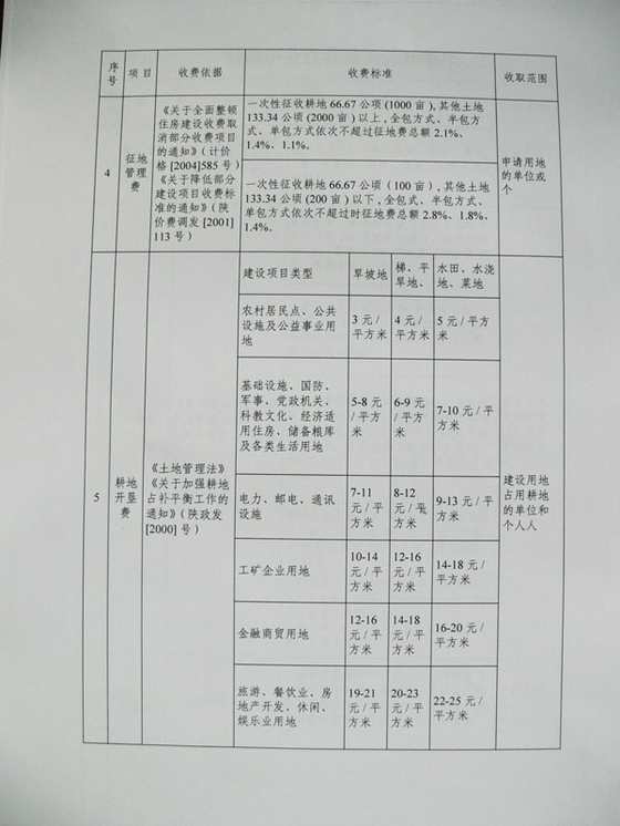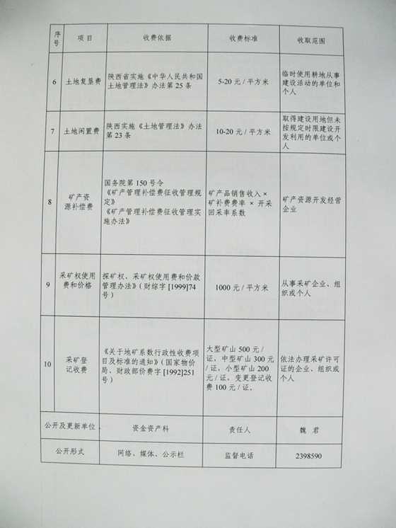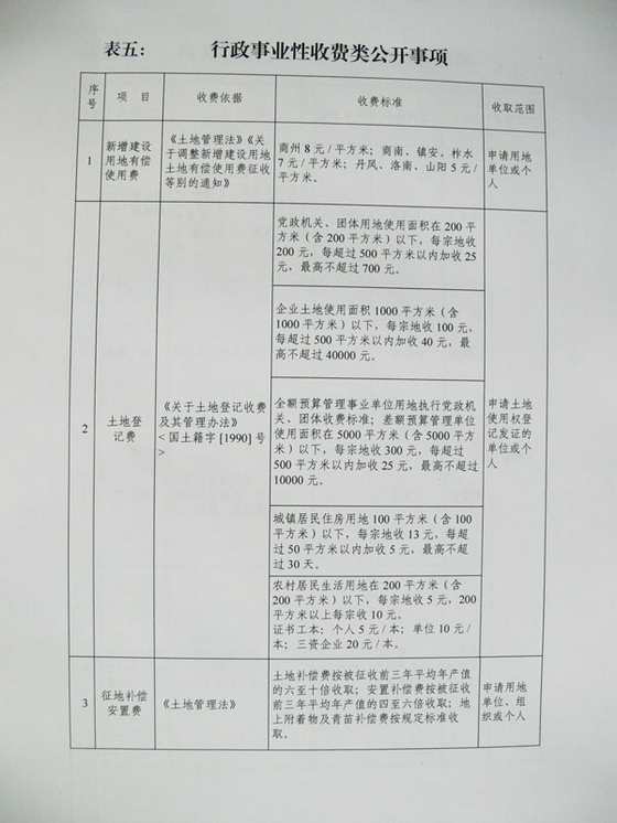 商洛市國(guó)土資源局行政事業(yè)性收費(fèi)類公開事項(xiàng)