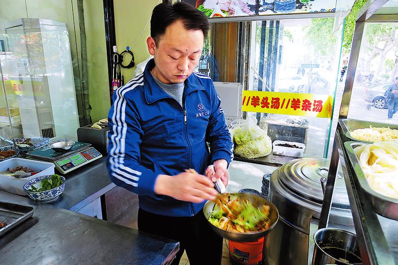 耿健開辦的陜西娃西安特色面館,店內的小吃大受歡迎。(5月3日攝)