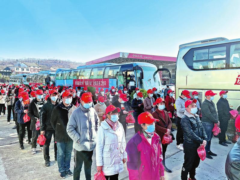 2月20日,丹鳳縣采取“點對點”方式,組織6輛大巴車集中輸送273名丹鳳籍農(nóng)民工外出務工。據(jù)了解,本次“點對點”輸出南京務工2車76人、內蒙古赤峰1車47人、溫嶺3車150人,是丹鳳縣2021年“春風行動”組織的第三批有組織勞務輸出。截至目前,已累計完成“點對點”有組織勞務輸出10車400多人。本次活動嚴格按照疫情防控程序,采取集體組織、統(tǒng)一協(xié)調車輛、全程跟蹤“點對點”服務,對車輛統(tǒng)一消毒,農(nóng)民工在工作人員的引導下,依次進行體溫檢測,有序登上務工專車,踏上返崗旅程。(陳沛坤 攝)