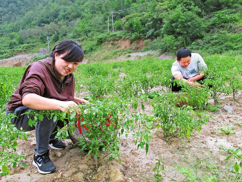 “這里原來是一個堆砂場,今年進行了墊土復(fù)耕,栽種了辣椒。這9畝地可收獲辣椒400多公斤。”10月11日,丹鳳縣龍駒寨街辦保倉村主任周斌向筆者介紹。據(jù)了解,丹鳳縣水利局聯(lián)合龍駒寨街辦及保倉村村委會組織施工隊,于今年4月對該處堆砂場臨時板房進行拆除,組織人力機械進行平整覆土施工,達到耕種條件后移交保倉村村委會組織群眾耕種,對恢復(fù)的9畝農(nóng)田及時種植了辣椒苗,辣椒喜獲豐收,群眾得到了實惠。(劉春榮 攝)