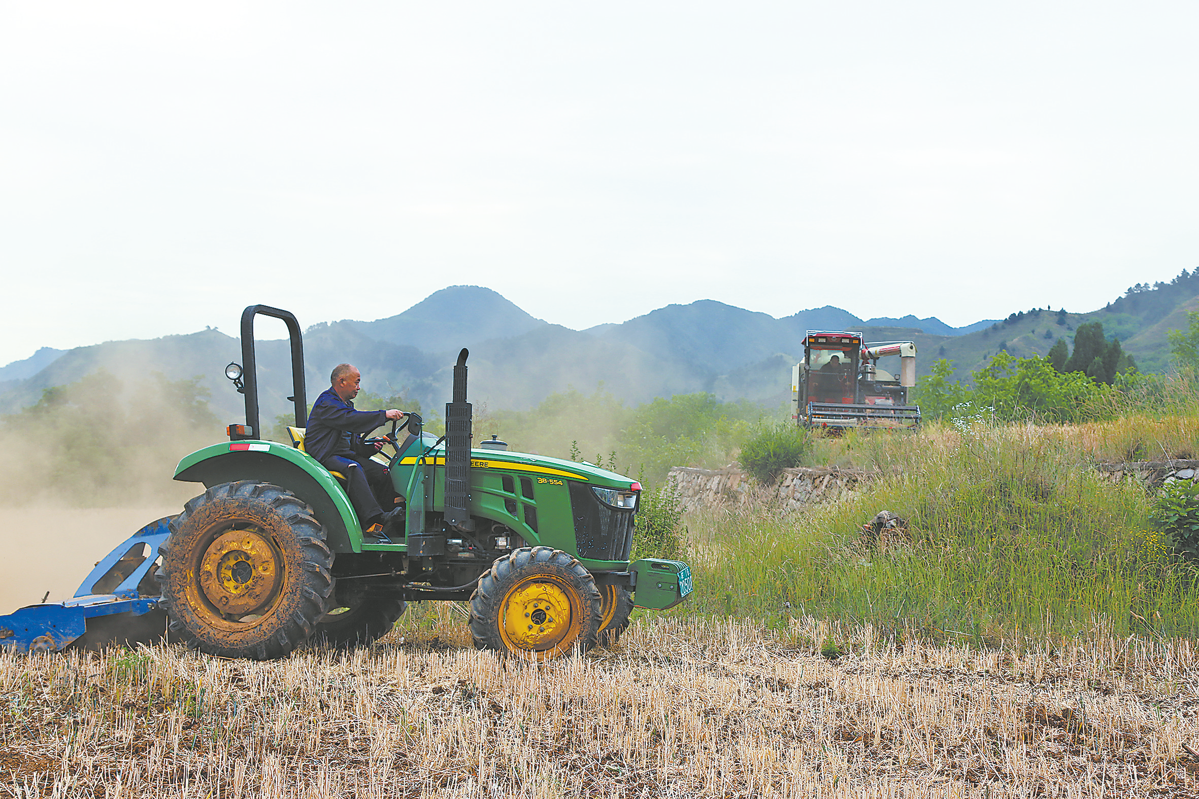 小麥?zhǔn)崭詈?,?lián)合播種機(jī)入場(chǎng)種植玉米大豆。