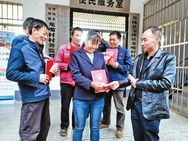 村民拿到龍嘴村綠東夢牧業(yè)驢場的分紅款,臉上笑開了花。 (本報(bào)通訊員 劉阿楠 攝)