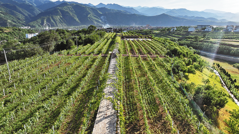 項(xiàng)目進(jìn)展:已完成投資6000萬(wàn)元,建成高標(biāo)準(zhǔn)葡萄基地2000畝、水雜果園600畝,栽種連翹6萬(wàn)多株,建設(shè)園區(qū)道路6.5公里,鋪設(shè)灌溉管網(wǎng)10公里。