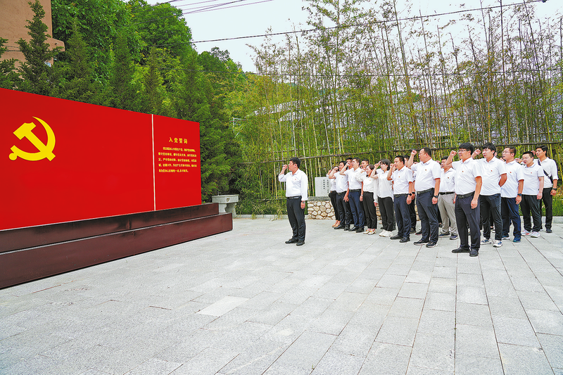 在“七一”建黨節(jié)即將到來之際,為慶祝建黨102周年,傳承黨的優(yōu)良傳統(tǒng),激勵(lì)黨員干部凝心聚力、提振精神,連日來,我市各地各部門黨組織紛紛開展形式多樣、豐富多彩的慶?;顒?dòng)。圖為丹鳳縣竹林關(guān)鎮(zhèn)機(jī)關(guān)黨支部組織全體黨員重溫入黨誓詞。(本報(bào)通訊員 雷明欣 攝)