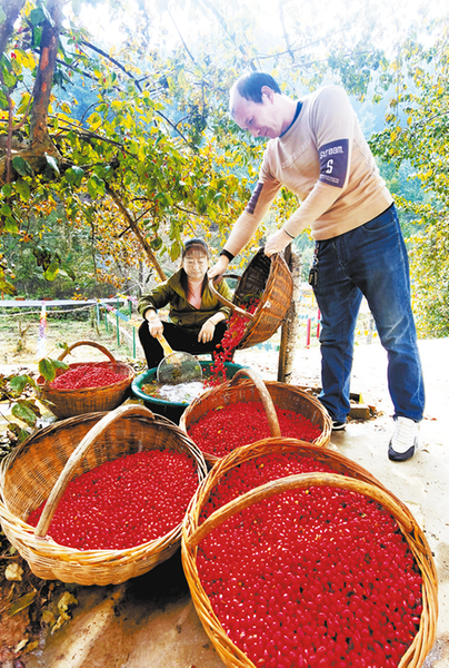 在打贏脫貧攻堅(jiān)戰(zhàn)和鄉(xiāng)村振興征程中,丹鳳縣山茱萸產(chǎn)業(yè)有了長(zhǎng)足發(fā)展。丹鳳縣寺坪鎮(zhèn)銀洞村黨支部書(shū)記查建民說(shuō):“在脫貧攻堅(jiān)之前,我們村的山茱萸經(jīng)過(guò)了數(shù)十年的發(fā)展,只有1200畝。那時(shí)候,山茱萸產(chǎn)業(yè)收入只占群眾年收入的百分之十幾。經(jīng)過(guò)脫貧攻堅(jiān)戰(zhàn)之后,全村的山茱萸栽植面積已發(fā)展到2500多畝,其收入占到群眾年收入的百分之三十以上。為確保山茱萸的藥效質(zhì)量,使采摘后不受天氣影響而發(fā)生霉變,銀洞村有100多戶群眾還自發(fā)購(gòu)買了山茱萸烘干機(jī)。”