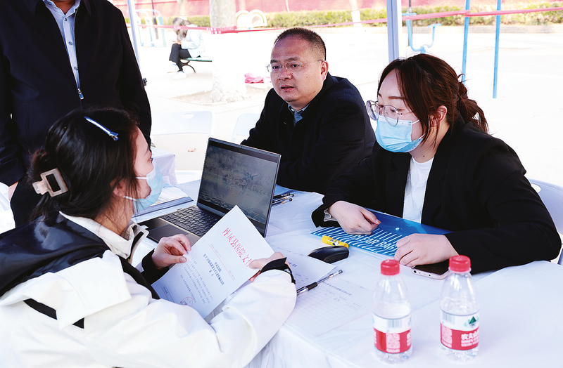丹鳳縣醫(yī)院院長(zhǎng)高應(yīng)東(中)在春季校園招聘會(huì)上為醫(yī)院引進(jìn)人才
