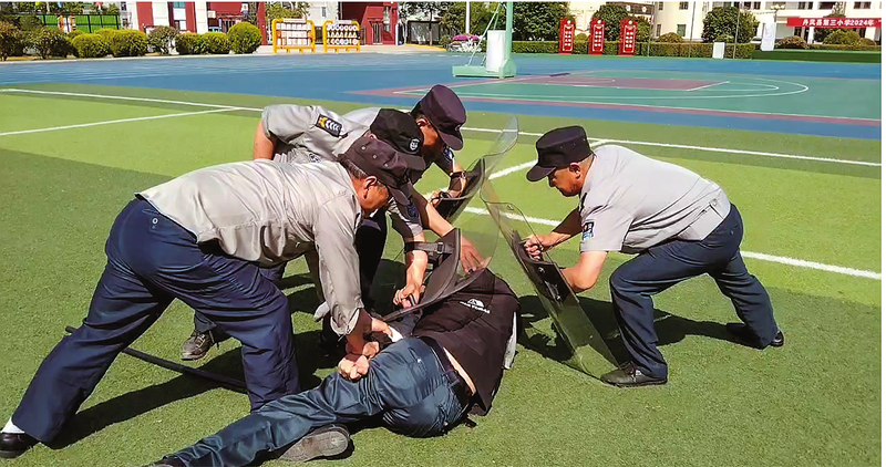 演練前,縣科教體局邀請專業(yè)人員對防暴盾牌、鋼叉等防暴器材的功能及使用要點進行詳細講解,現(xiàn)場示范使用方法,并結合實際案例,對如何做好校園防欺凌、門禁工作等進行規(guī)范要求,從安保人員、師生等不同角度分別演示了應對突發(fā)事件的處置方法。演練采取“實戰(zhàn)化”場景模擬,一名“暴恐分子”持械意欲進入到學校,安保人員發(fā)現(xiàn)后,學校立即啟動防暴恐預案,護校隊第一時間趕到大門口,分工協(xié)作,配合默契,快速制服侵入校園“暴恐分子”,整個處置過程安全、快速、有序。下一步,丹鳳縣科教體局將強化平安校園創(chuàng)建,深化“護校安園”行動,聯(lián)合公安部門通過舉辦安防培訓、校園安全管理能力提升行動,全面提升校園安全管理人員反恐防暴意識及應急處理能力,確保轄區(qū)校園平安穩(wěn)定。