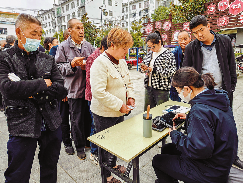 本報(bào)訊 (通訊員 蘇甜甜 雷明欣)連日來,因養(yǎng)老經(jīng)費(fèi)撥付更換至社保卡,群眾需去銀行辦理社??せ顦I(yè)務(wù)。為方便轄區(qū)群眾辦理該業(yè)務(wù),10月24日至25日,丹鳳縣竹林關(guān)鎮(zhèn)組織轄區(qū)農(nóng)業(yè)銀行、工商銀行、郵政儲(chǔ)蓄銀行等金融機(jī)構(gòu)在丹水社區(qū)開展社保卡集中激活服務(wù)。