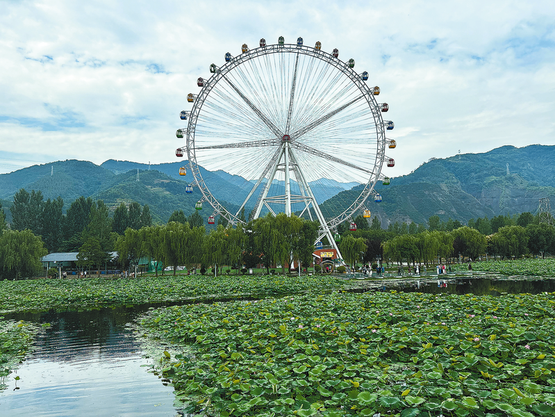 盛夏至,賞荷正當(dāng)時(shí)。6月22日,丹鳳縣棣花古鎮(zhèn)的千畝荷塘滿塘風(fēng)光無限,亭亭玉立的荷花次第綻放,美不勝收,游客紛紛前來游玩拍照。 (本報(bào)記者 黃朝梅 攝)