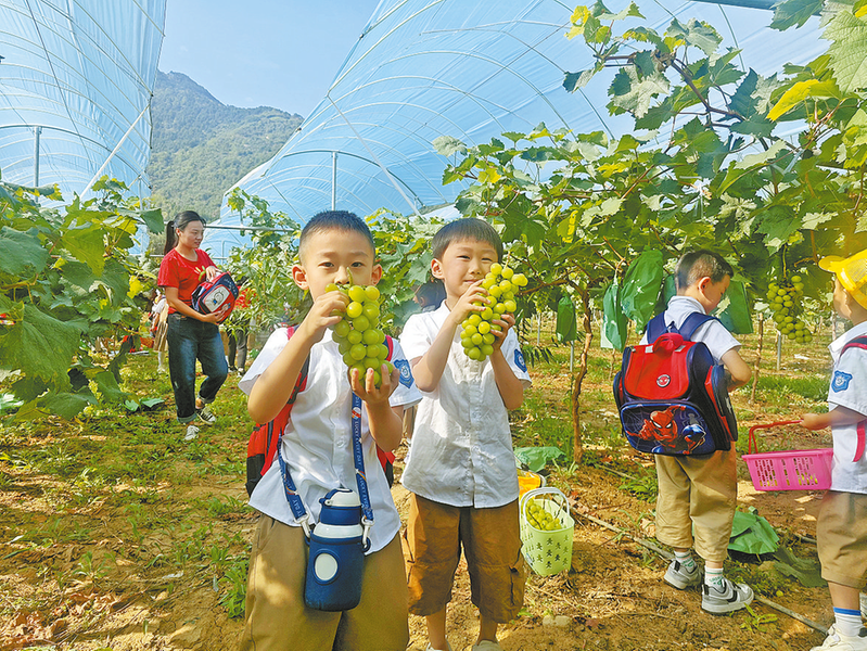 研學(xué)活動(dòng)中,孩子們體驗(yàn)葡萄采摘的樂趣。