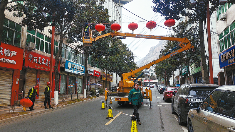 1月28日,為營造喜慶熱鬧的節(jié)日氛圍,丹鳳縣精準選址布局,組織工作人員在縣城多條主次干道及城市重要節(jié)點懸掛大紅燈籠,將城區(qū)裝點得暖意融融。 (本報通訊員 樊利仁 攝)