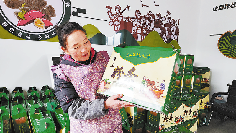張粉利介紹合作社禮品盒裝純手工紅薯粉條。