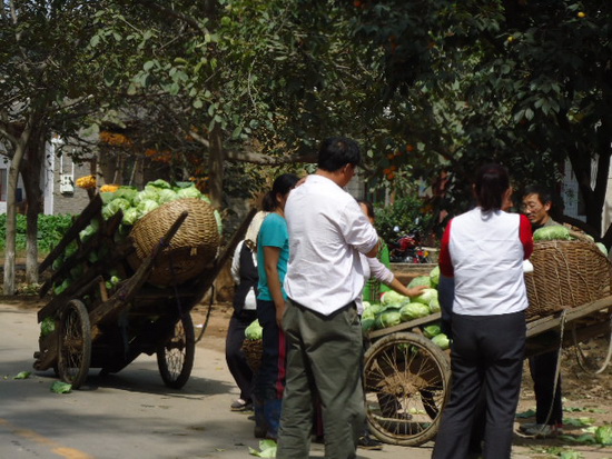 本網(wǎng)訊(馬宏濤 劉亞亞) 洛南縣景村鎮(zhèn)農(nóng)民種植的甘藍(lán)質(zhì)優(yōu)價廉,加之交通便利。近期吸引了許多河南客商來到該鎮(zhèn)收購甘藍(lán)。圖為客商正在景村收購甘藍(lán)運往河南南陽。