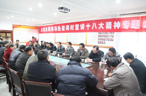 在專題會(huì)上,張盈安從黨十八大報(bào)告提出到2020年全面建成小康社會(huì)的奮斗目標(biāo),堅(jiān)持走中國(guó)共產(chǎn)黨領(lǐng)導(dǎo)的中國(guó)特色社會(huì)主義道路,完善未來(lái)發(fā)展體系和把我國(guó)建成富強(qiáng)、民主、文明、和諧的社會(huì)主義現(xiàn)代化國(guó)家等四個(gè)方面,結(jié)合我縣和云蓋寺鎮(zhèn)實(shí)際情況,對(duì)黨的十八大報(bào)告的要點(diǎn)和主要精神深入淺出地進(jìn)行了全面解讀。張盈安指出,黨的十八大確立的重大理論觀點(diǎn)、重大方針政策和重大工作部署,明確了未來(lái)五年乃至十年的發(fā)展目標(biāo)和任務(wù),對(duì)于全面建成小康社會(huì)、改變貧困地區(qū)面貌具有重大意義。云蓋寺鎮(zhèn)和巖灣村要以十八大精神為統(tǒng)領(lǐng),進(jìn)一步完善工作措施,加大工作力度,全面推動(dòng)巖灣村各項(xiàng)事業(yè)全面發(fā)展。