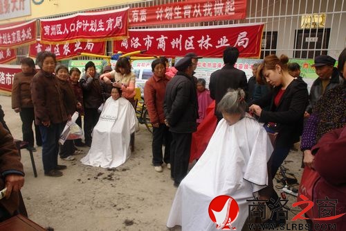 備受群眾歡迎的義務(wù)理發(fā)志愿者小分隊(duì),忙著為排隊(duì)等候的群眾理發(fā)。