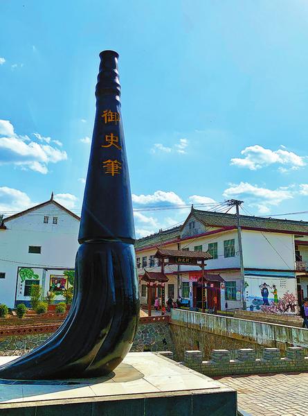 柳枝出新綠,花間野蜂忙。4月14日,記者在洛南縣采訪途經(jīng)景村鎮(zhèn)御史村時,被眼前美麗鄉(xiāng)村的景象深深吸引。御史村位于344國道旁,村口有一支巨大的毛筆雕塑。據(jù)村民說,在明代時,村里出了一名姓張的御史,為村里辦了許多好事,如今的御史村是由三個村子合并而成,為了紀(jì)念這位張御史,才以他的官位作為村名。