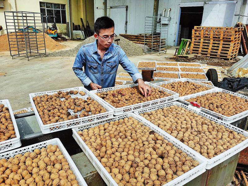 近年來,洛南縣將發(fā)展紅仁核桃產(chǎn)業(yè)作為生態(tài)富民的新路徑和新抓手,采取抓點示范和技術(shù)包抓機制,加強科學(xué)技術(shù)管理,紅仁核桃實現(xiàn)了豐產(chǎn)高效。洛南縣核桃研究所所長郭安柱說:“目前洛南縣核桃面積68萬畝,預(yù)計今年產(chǎn)量4.6萬噸、產(chǎn)值6.4億元,其中紅仁核桃累計發(fā)展面積5000畝,已經(jīng)掛果面積1320畝,預(yù)計產(chǎn)量15噸、產(chǎn)值300萬元。由于紅仁核桃是從2017年開始成規(guī)模發(fā)展,目前才進(jìn)入初果期,畝產(chǎn)量較低,但每公斤紅仁核桃的平均銷售價在200元以上,比普通核桃的市場價格要高10多倍。”