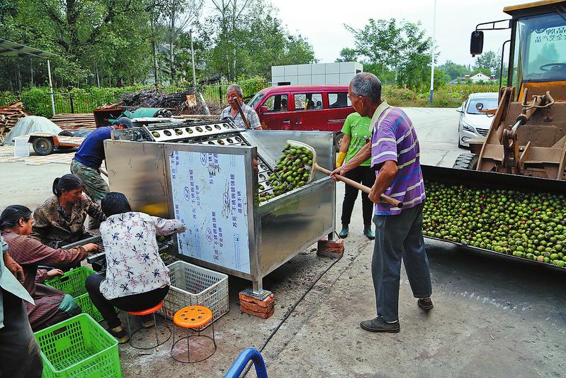 商洛盛大實業(yè)股份有限公司從紅仁核桃基地采收回來的青皮核桃