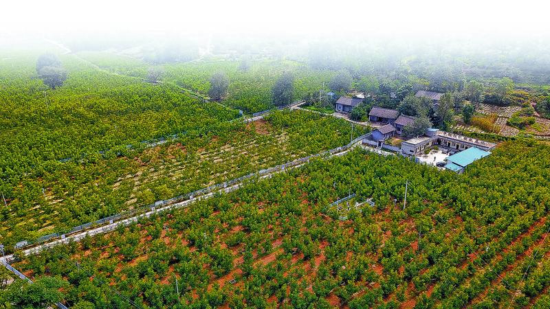 位于洛南縣景村鎮(zhèn)的中國紅仁核桃基地全景