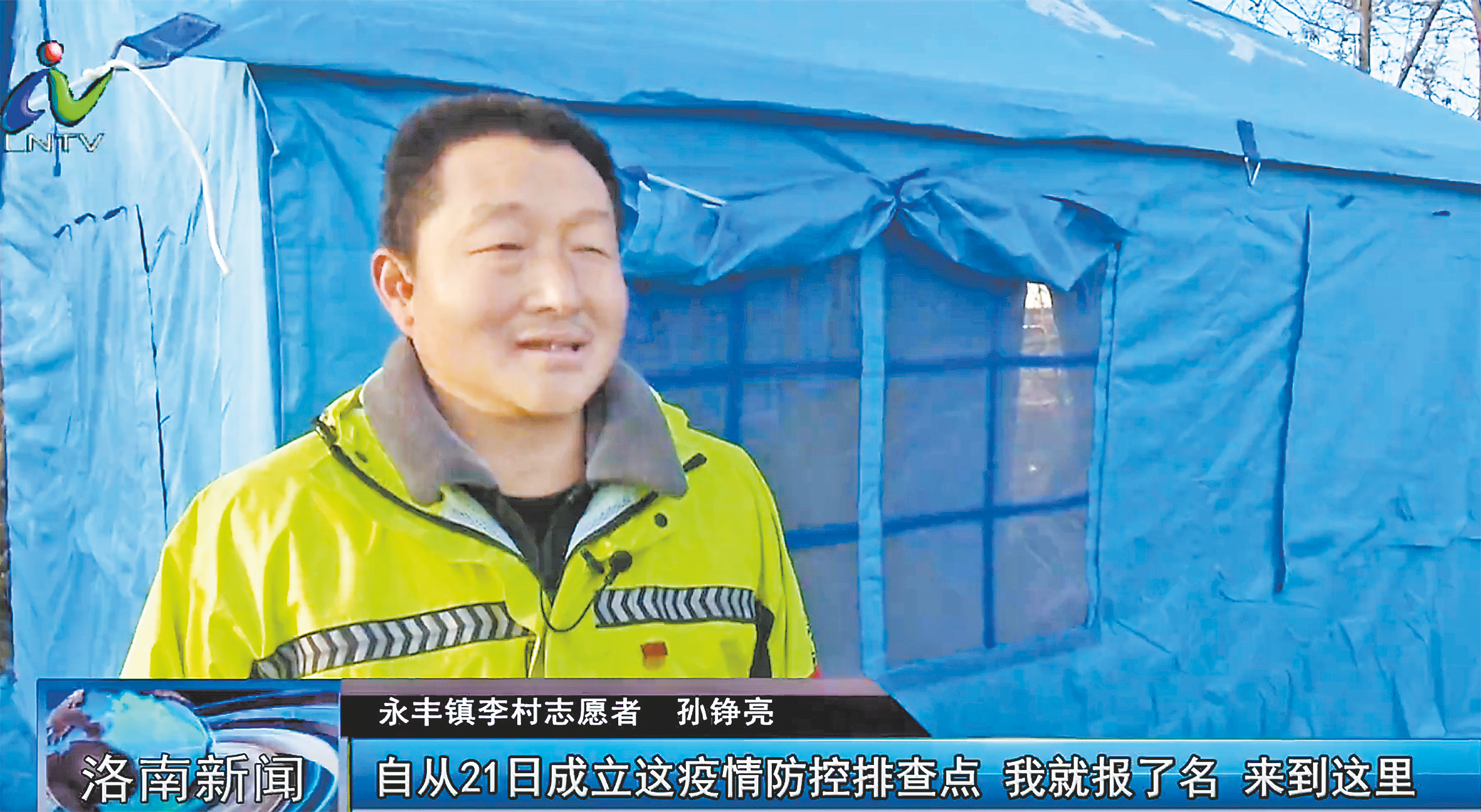 “自從21日村里成立排查點,我就報了名,來到點位,參與值守。”2021年12月31日,洛南電視臺采訪了孫錚亮,鏡頭里的他語言質(zhì)樸、言辭懇切:“排查點搭了帳篷后,所需要的東西,只要是家里有的,我都帶來。為了洛南人民的平安,我愿意貢獻(xiàn)自己的一份力量,和大家一起做好疫情防控工作。”