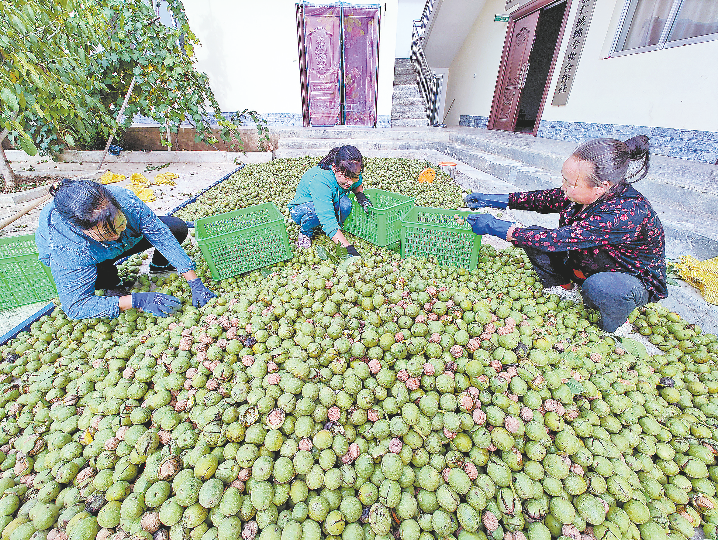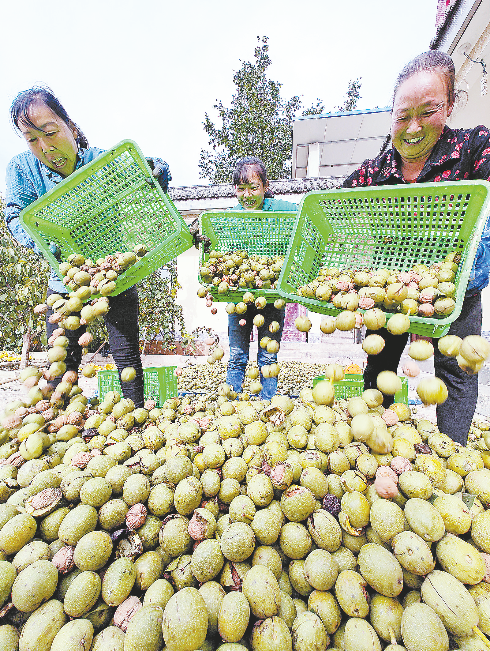 連日來(lái),洛南縣的紅仁核桃迎來(lái)豐收,在景村鎮(zhèn)千畝紅仁核桃基地,村民們忙著采摘、搬運(yùn)、脫皮、烘干紅仁核桃,一派繁忙的景象。