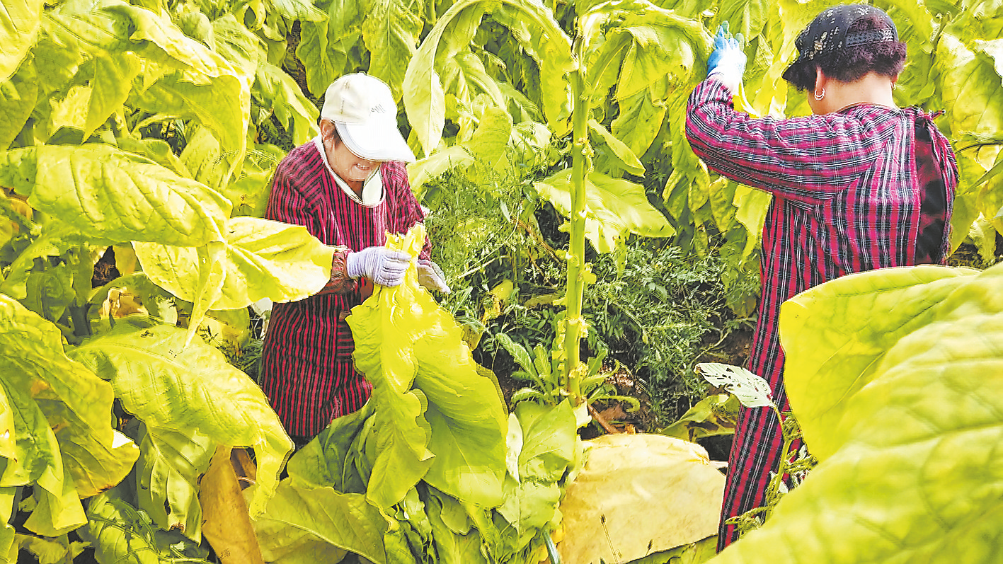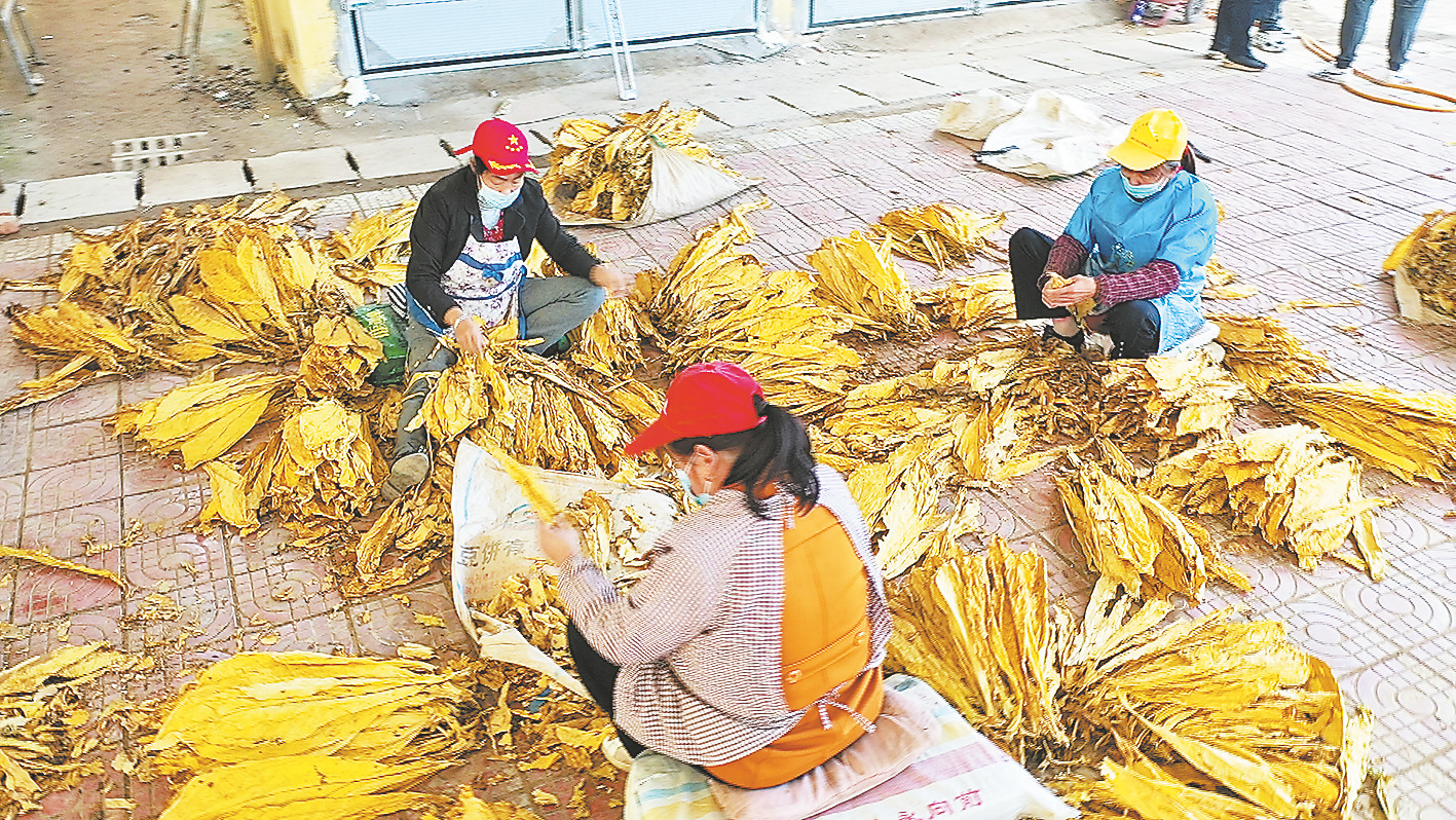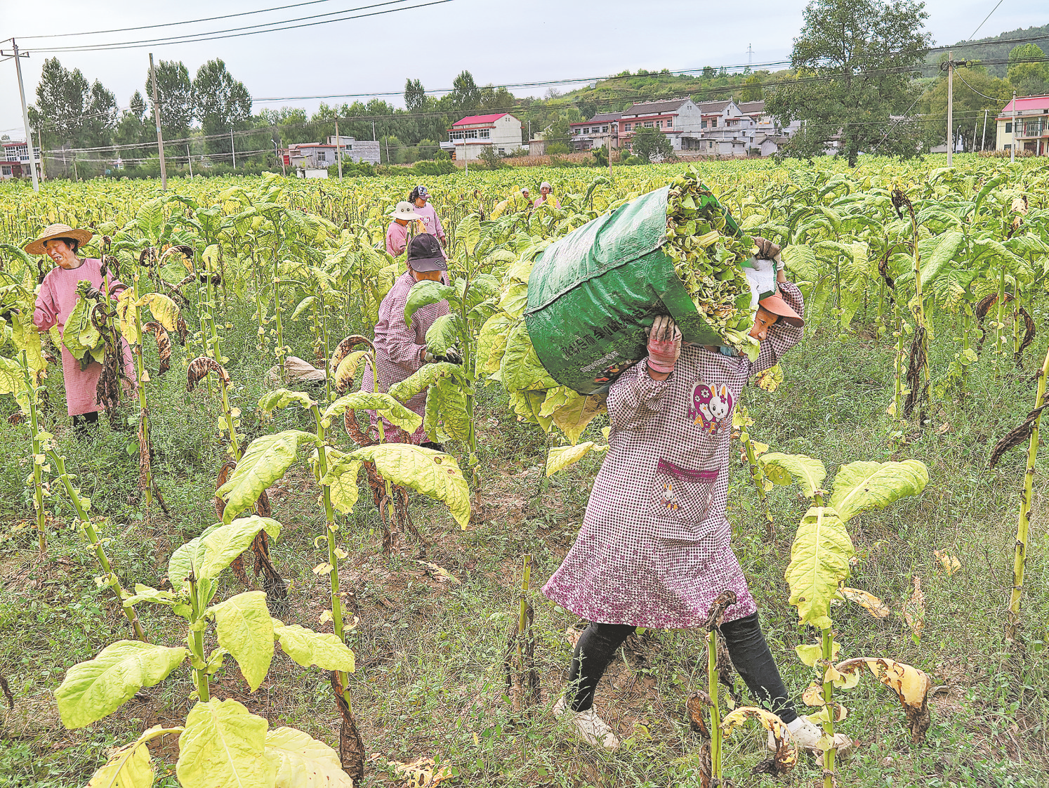 景村鎮(zhèn)八一村惠民烤煙種植合作社組織人員采摘煙葉(本報記者 楊 鑫 攝)
