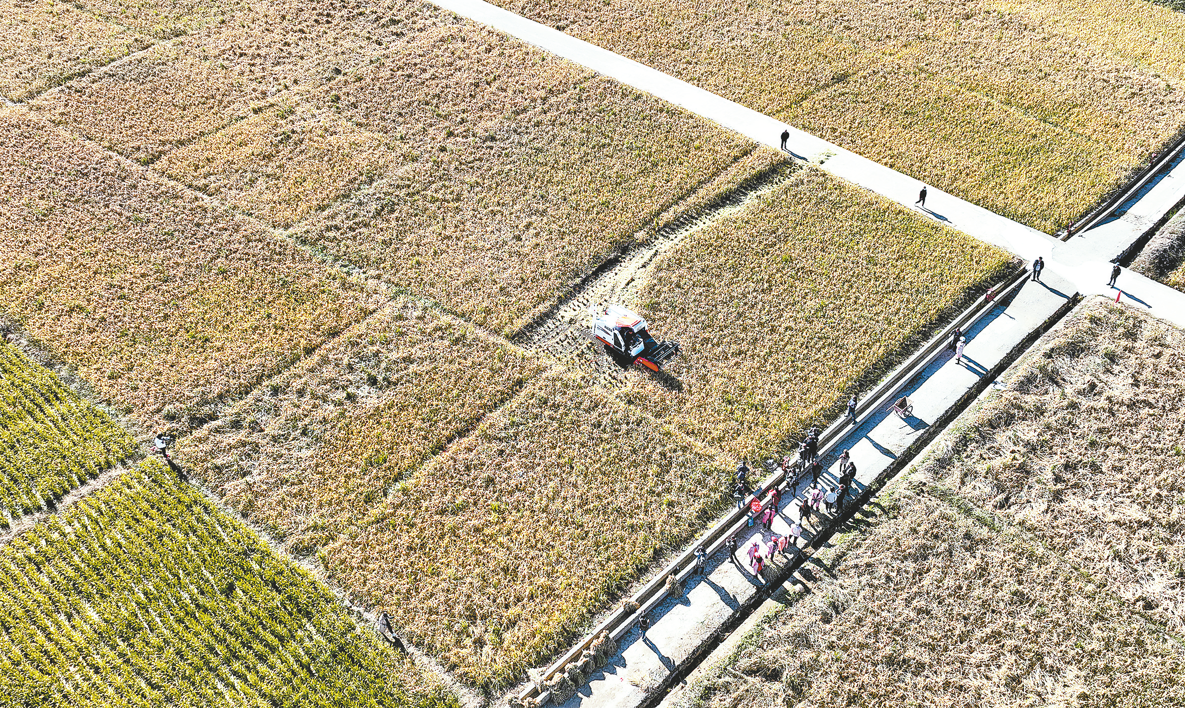 △收割現(xiàn)場(chǎng) (新華社記者 陶 明 攝)