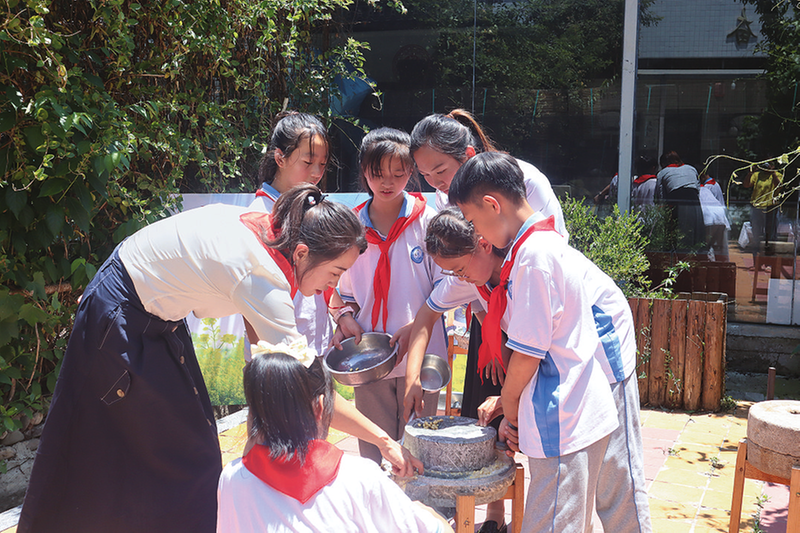 在洛南縣眾鑫農(nóng)園豆制品專業(yè)合作社的工廠內(nèi),王洋正在教小朋友們用傳統(tǒng)手藝制作豆腐。