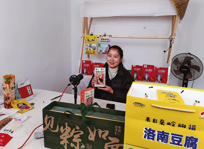 3月9日,在洛南縣民生食品科技開發(fā)有限公司直播間內(nèi),公司法人王翩然面對鏡頭向網(wǎng)友推介“百年王家”洛南豆腐。