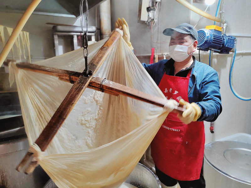 “漿水”,是洛南人對點(diǎn)豆腐時(shí)的鹵水的稱呼。洛南人點(diǎn)豆腐,靠的是這特有的“漿水”,而不是用傳統(tǒng)的石膏或鹽鹵來點(diǎn)制,因此,洛南豆腐上百年前就聲名遠(yuǎn)揚(yáng)。如今,當(dāng)?shù)馗叨戎匾暥垢a(chǎn)業(yè),將其作為縣域經(jīng)濟(jì)發(fā)展的重要產(chǎn)業(yè),全面激發(fā)洛南豆腐市場消費(fèi)活力,有效激活縣域經(jīng)濟(jì)發(fā)展動(dòng)能,以“小豆腐”提振縣域“大經(jīng)濟(jì)”。