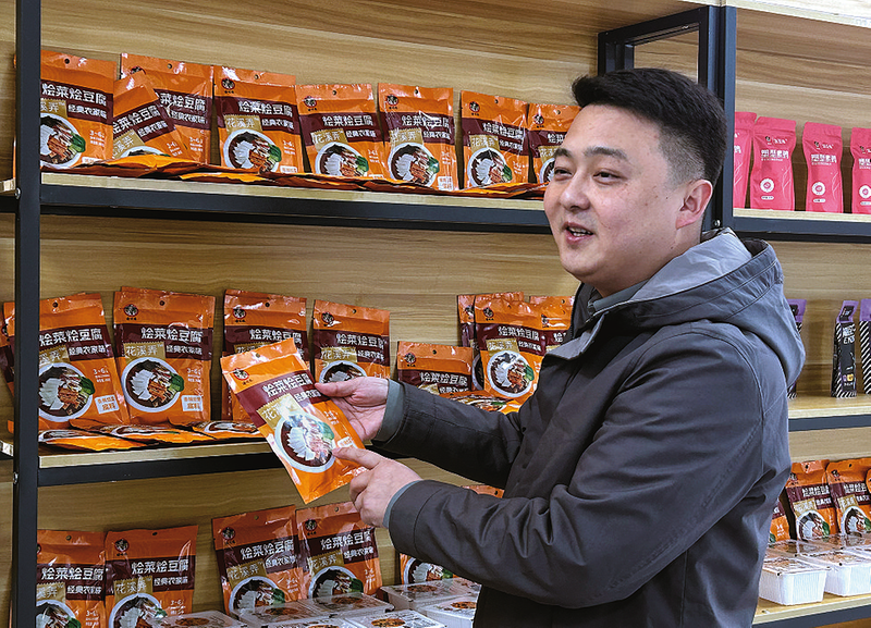 洛南縣豆農(nóng)食品科技有限公司總經(jīng)理張亞斌介紹公司生產(chǎn)的燴豆腐湯料。