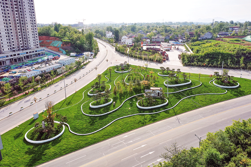 改造提升后的洛南華陽高速路口口袋公園