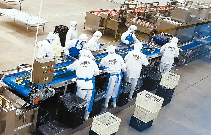 近年來,洛南縣把核桃作為農(nóng)業(yè)首位產(chǎn)業(yè),依托西北核桃物流園,延長(zhǎng)產(chǎn)業(yè)鏈條,傾力打造核桃百億級(jí)產(chǎn)業(yè)集群,推動(dòng)核桃產(chǎn)業(yè)發(fā)展。圖為11月25日,在位于洛南縣西北核桃物流園內(nèi)的陜西天榛食品科技公司生產(chǎn)線上,30多名工人正在加工果干。 (本報(bào)通訊員 閆偉鋒 攝)