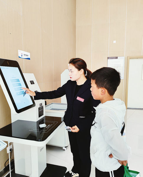 圖書館工作人員指導(dǎo)讀者正確使用自動(dòng)圖書借還機(jī)