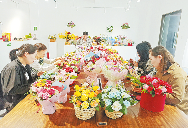 商洛德潤寶實業(yè)有限公司的工人在制作香皂花