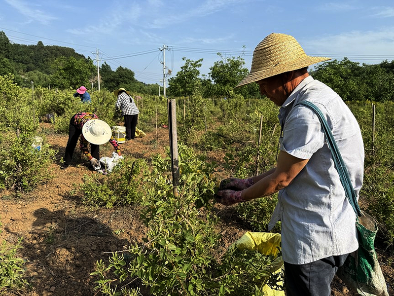 務(wù)工群眾采摘金銀花