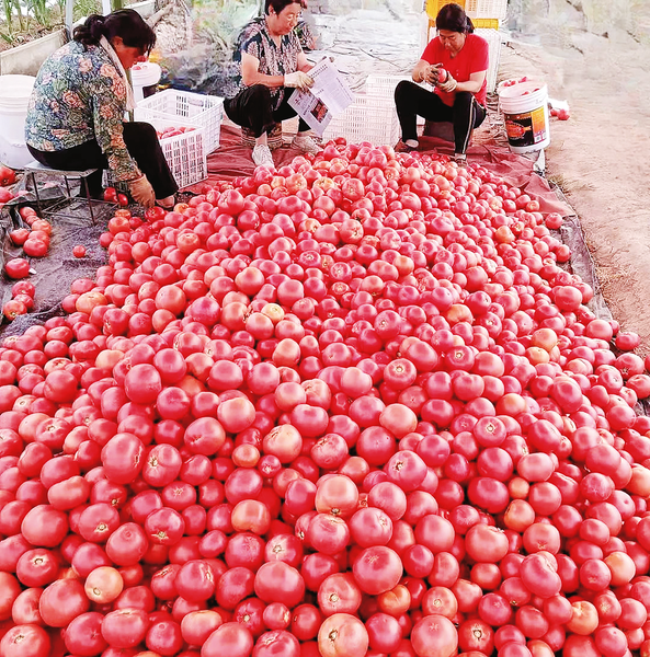 村民在分揀西紅柿