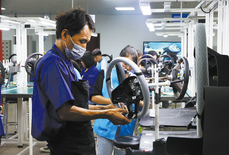 比亞迪實業(yè)有限公司生產(chǎn)車間內(nèi)工人忙碌有序