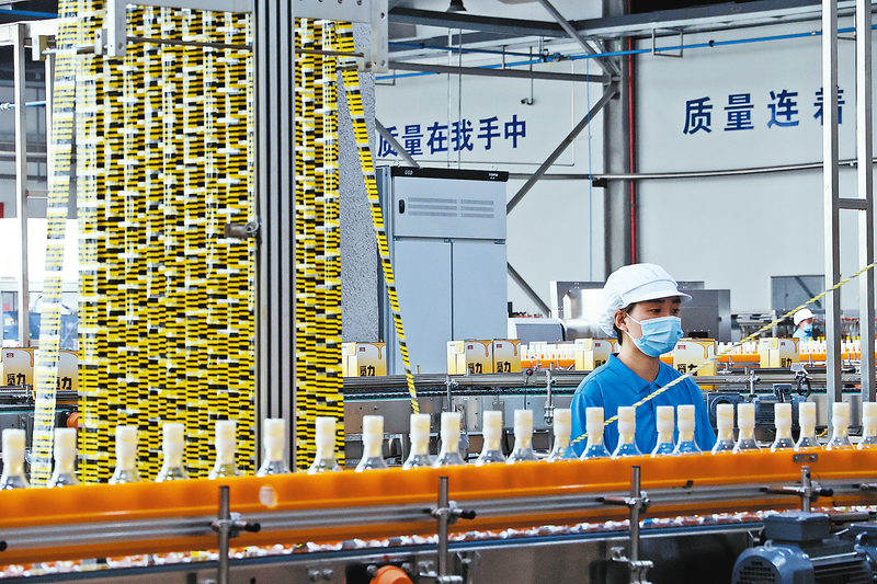 6月11日,商洛高新區(qū)商洛國蜂蜜水產(chǎn)業(yè)園內(nèi),工人正在生產(chǎn)線檢查產(chǎn)品包裝情況。據(jù)了解,該項目以鮮存雙儲蜂蜜水為核心產(chǎn)品,填補液態(tài)蜂蜜便攜飲品市場空白,與傳統(tǒng)瓶裝水形成差異化競爭,通過“一品帶三業(yè)”的模式,直接帶動2000余戶職業(yè)蜂農(nóng)和檸檬種植戶,實現(xiàn)戶均增收近10萬元,提供直接就業(yè)崗位300余個。 (本報記者 楊 康 攝)