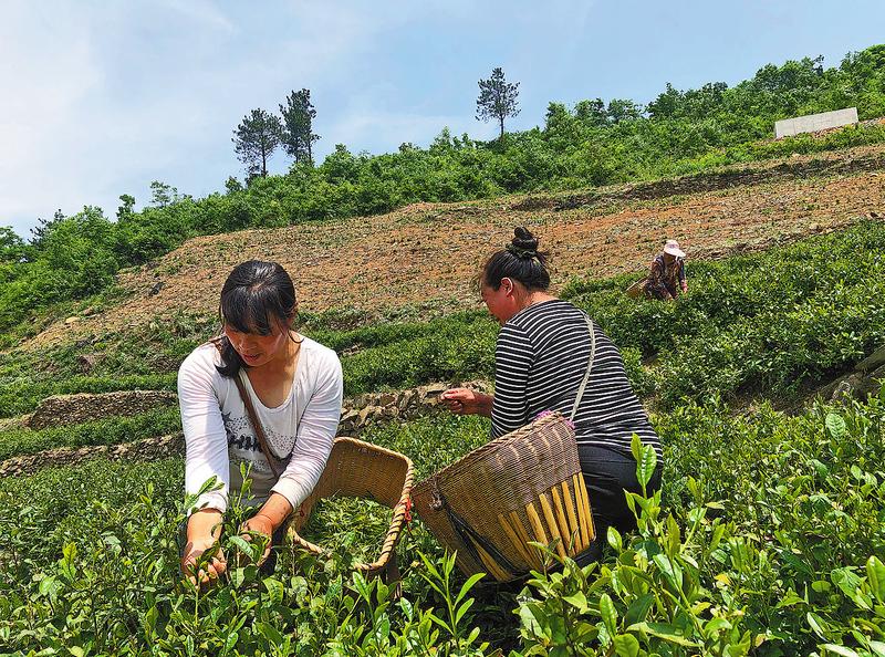 雨山茶葉專業(yè)合作社的茶園位于李家灣村海拔800米到1000米的余家山上。茶園里,工人們正埋頭采摘。