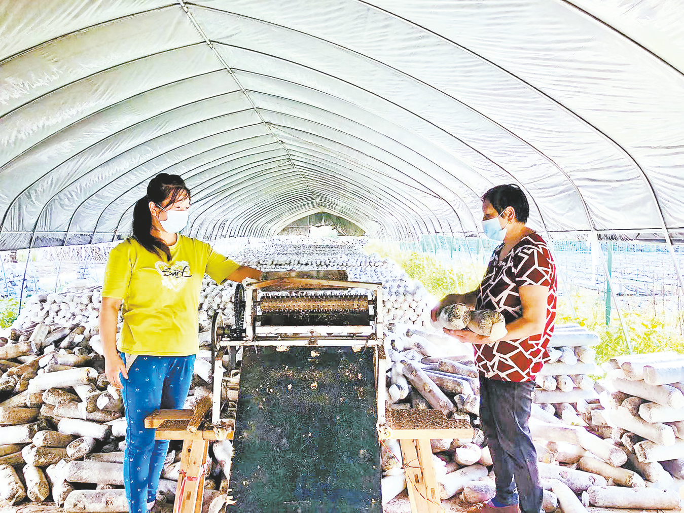 9月1日,在商南縣青山鎮(zhèn)食用菌產(chǎn)業(yè)園區(qū),20多名群眾正在將菌種裝袋、刺孔、擺放。據(jù)介紹,在商南縣疫情防控形勢(shì)好轉(zhuǎn)后,青山鎮(zhèn)及時(shí)進(jìn)行風(fēng)險(xiǎn)評(píng)估,在確保安全、守牢防線的前提下,組織轄區(qū)重點(diǎn)企業(yè)有序復(fù)工復(fù)產(chǎn)。目前,青山鎮(zhèn)食用菌產(chǎn)業(yè)園區(qū)已裝袋擺放木耳菌棒100多萬袋,帶動(dòng)周邊8名受疫情影響群眾就業(yè)增收。