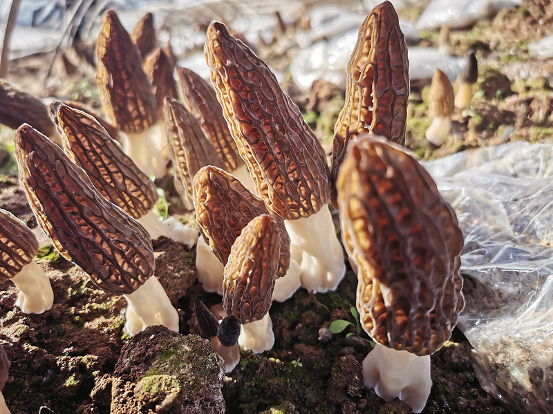 在周明精細化的指導下,其他幾個種植大戶臉上都洋溢著豐收的喜悅。今年第一年跟著周明種植羊肚菌的嚴峻告訴筆者:“因為土壤和其他因素,雖然和周明師傅的地離得不遠,但是我這出菇比較晚,3月3日‘報信菇’才來,今天是第一天采摘,出菇情況還可以,估計豐產期還得一周左右。”