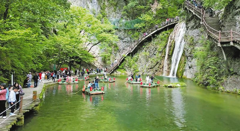 “五一”假期,商南縣各景區(qū)景點(diǎn)產(chǎn)品供給豐富,為游客出游提供了更多的新場景、新玩法和新體驗(yàn),文旅市場活力十足,消費(fèi)持續(xù)升溫。圖為游客在金絲峽景區(qū)游玩。(本報(bào)通訊員 景鑫 攝)