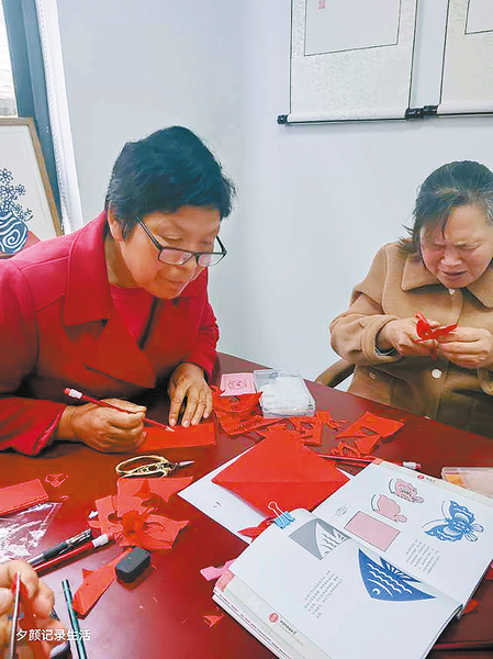 “社區(qū)喜歡剪紙的老人有空就去我那里學習,有時三四個,有時一兩個,帶的小孩有興趣學的話我也會教?,F(xiàn)在他們可以剪一些基礎的,等他們學會了可以根據(jù)自己的技術(shù)水平創(chuàng)造作品并進行售賣,都能有一定的收入,我在教他們的同時也可以提升自己的剪紙技術(shù)。通過相互學習,讓老人從中獲得非遺傳承,生活上也能更加豐富多彩一些,有利于他們更加快樂健康生活。”熊紅艷說。