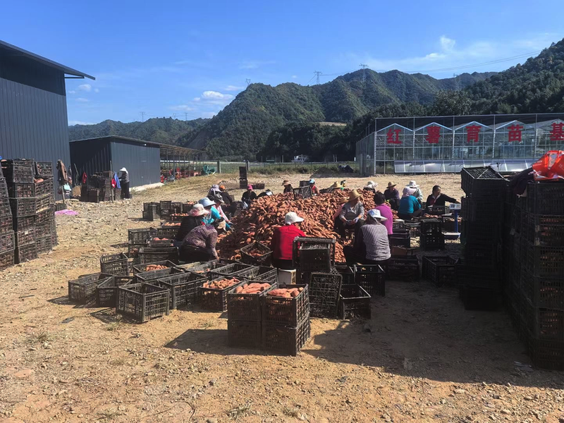 在秦嶺蜜薯種植基地,隨著挖薯機(jī)在田埂間來回穿梭,翻滾的泥土中,一顆顆紅潤誘人的紅薯紛紛探出頭來,務(wù)工群眾正在給新出土的蜜薯去泥、分揀、裝箱,一堆堆剛出土的紅薯擺滿田間地壟,個(gè)個(gè)體態(tài)飽滿、顏色鮮艷,煞是喜人。田間呈現(xiàn)一派繁忙豐收景象。蜜薯晾曬一個(gè)小時(shí)后,按照大小規(guī)格進(jìn)行初步分級——小薯、中薯、大薯裝入紙箱,然后裝車運(yùn)往倉庫,發(fā)往全國各地。