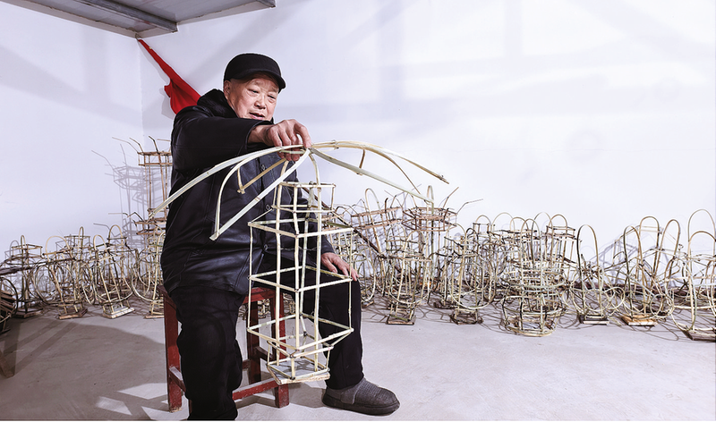 汪祥家說,他從十幾歲時,就跟隨本家的叔叔伯伯學習花燈的制作技藝,這一扎就是60多年。起初,他是照著長輩們做的燈樣兒扎,一個像樣的花燈架子,有時要做四五遍。憑借著濃厚的興趣和堅韌的毅力,加之不斷地摸索創(chuàng)新,到如今,只要是腦海里想出來的事物,他都能扎得出來。