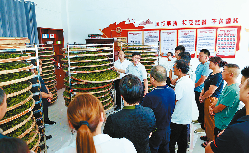 7月31日至8月3日,中國農(nóng)業(yè)科學(xué)院茶葉研究所原副所長魯成銀到商南縣試馬鎮(zhèn)沁園春茶樹良種繁育基地、城關(guān)街道瓜山群體種茶葉基地等地,通過現(xiàn)場指導(dǎo)、綠茶加工技術(shù)實(shí)操培訓(xùn)、夏秋茶品鑒交流等方式,指導(dǎo)茶葉加工技術(shù)人員進(jìn)一步提高制茶水平,為茶葉經(jīng)營主體指明發(fā)展方向,助推我市茶產(chǎn)業(yè)高質(zhì)量發(fā)展。 (本報(bào)通訊員 阮世喜 攝)