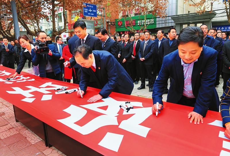 12月4日上午,在第五個國家憲法日暨全國法制宣傳日到來之際,山陽縣人大常委會組織開展“弘揚(yáng)憲法精神、建設(shè)法治山陽”憲法宣傳活動,縣各部門領(lǐng)導(dǎo)、工作人員代表和學(xué)生代表及群眾共700多名參與宣誓及簽名活動。