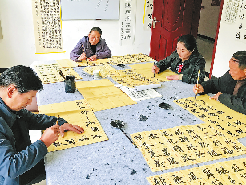 在高壩店鎮(zhèn)富橋社區(qū)新時代文明實踐站,居民閑暇時間在這里練習書法。