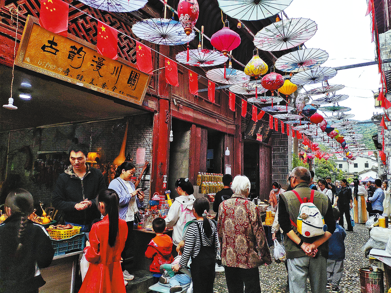 山陽(yáng)縣漫川古鎮(zhèn)商貿(mào)歷史悠久,當(dāng)?shù)鼐用裼?ldquo;十戶九經(jīng)商”之說。歷史上漫川關(guān)就以地貌廣闊、水域?qū)捬芏妹?,地?shì)險(xiǎn)要為兵家必爭(zhēng)之地。漫川關(guān)水旱碼頭通往各地,商務(wù)繁榮,人口稠密,“北通秦晉,南聯(lián)吳楚”,“朝秦暮楚”的典故源于此地。圖為漫川老街近景。